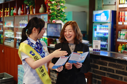 四川省大邑支行为餐饮商户介绍普惠金融产品。