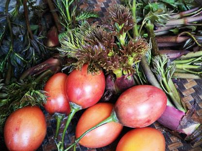 居住在滇西南的傣族、佤族的饮食结构由其居住的环境决定,因炎热所致,味喜酸、辣、苦(凉),三者皆可助开胃化食,消暑解毒杀菌。其食物种类极为繁多,除庭园种植和家庭饲养的物产以外,山野河流所产,似乎都可入食。当地人戏言:“凡是绿的都是菜,凡是动的都是肉。”更有一些奇异之物,如蚂蚁蛋、蝉蛹、花蜘蛛、青苔等皆为傣族喜爱的食品,使游客惊异不已。食物的烹制方法主要有烤、蒸、炸、煮、腌、剁、舂。而佐料的配制也极为讲究。