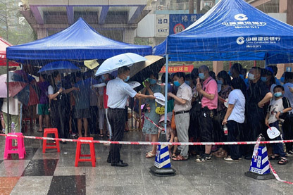 “幸亏你们装备齐全,广东的天气果真说变就变。”在佛山市红棉雅苑街道核酸检测点,建行志愿者们正在合力搭建帐篷,为社区居民撑起一片遮阳挡雨的天地。