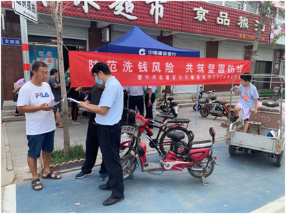 由于雄安新区正处于大规模征迁阶段,许多不法分子盯上了老百姓的拆迁款,发生了多起金融诈骗案件。为提高老百姓的风险防范意识,分行先后在当地66个村开展了防范金融诈骗的墙体宣传,并在100余个服务点悬挂风险防范和非法集资危害的宣传条幅,以立体式的宣传提示村民妥善保护好“血汗钱”,共计服务征迁村民3.8万余名。