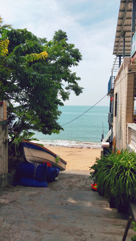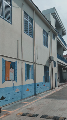 随意一处转角,都可以邂逅不同的涂鸦,红色指示杆、白色斑马线,时不时有本地居民骑着摩托车穿街而过,或是有几句听不太懂的海南话飘来邀你去喝椰子水。有时候可能会恍惚觉得自己在漫画世界中行走,可能是一头正在遨游的鲸鱼,可能是一条登上天窗的楼梯,也可能是正在长椅上逗猫的孩子。渔村由内而外散发着的文艺气息,深入到大街小巷,深入到每一户人家,更加深入到我的心里。门口、墙壁,哪怕是一节水管,处处都是风景,行走其中,内心分分钟便被治愈。