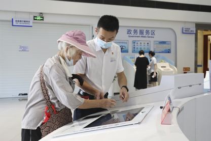 广东 湛江市分行网点员工用爱心、细心、耐心引导老年客户办理业务。