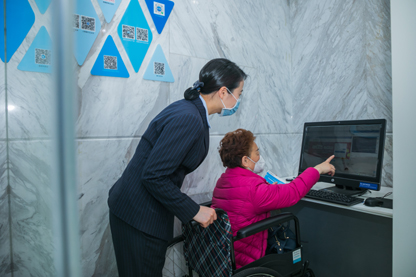 为方便行动不便的老年人能够更为“顺畅”地到网点办理业务,建行聚焦弱势群体,优化无障碍服务,开展打造无障碍服务示范网点,推进无障碍硬件配置,加强员工无障碍服务技巧培训,制定特殊客户服务指引等工作,让优质服务触达每一位客户。