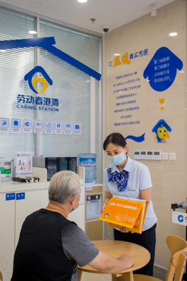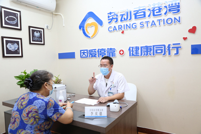 贵州 黔西南分行营业室以“劳动者港湾+医疗”为载体,在健康咨询室为老年客户开展健康义诊活动。