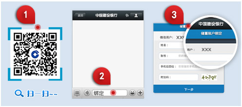 1.轻扫二维码,或查找公众号“中国建设银行”,并添加好友