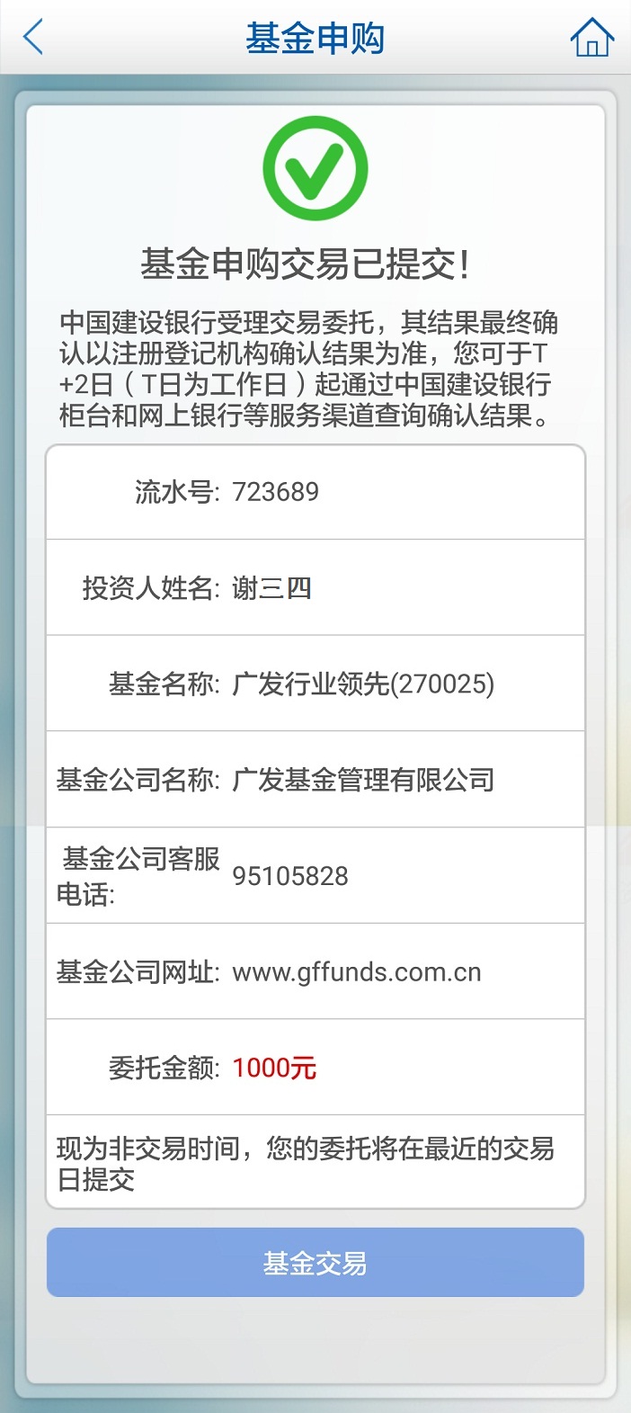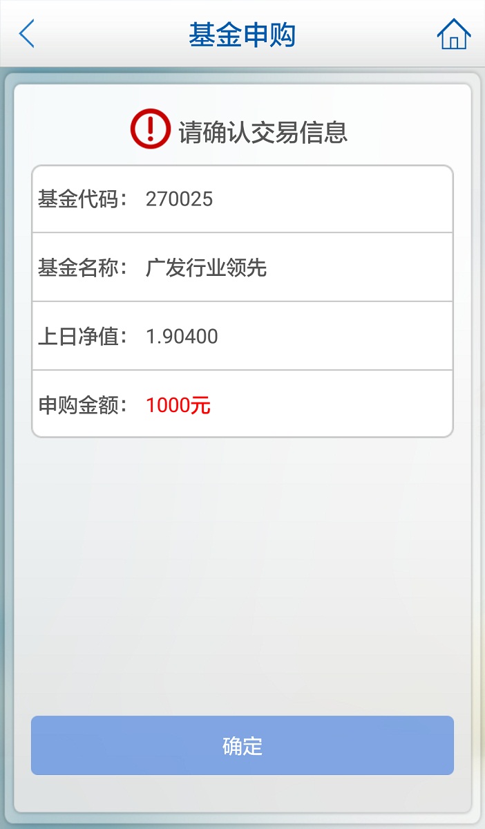 确认购买基金信息及购买金额。注:若是首次在我行购买基金,需先开通基金服务。